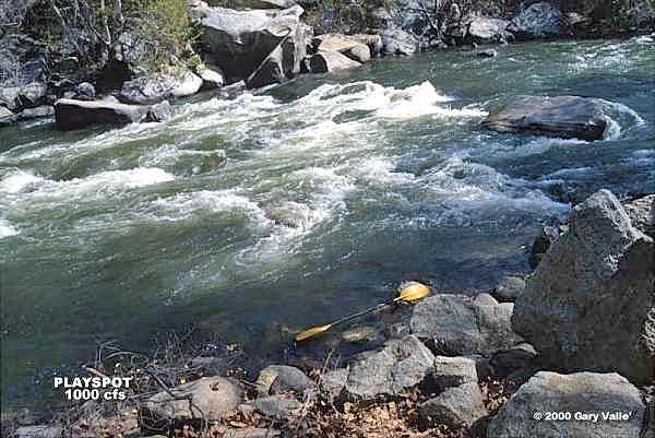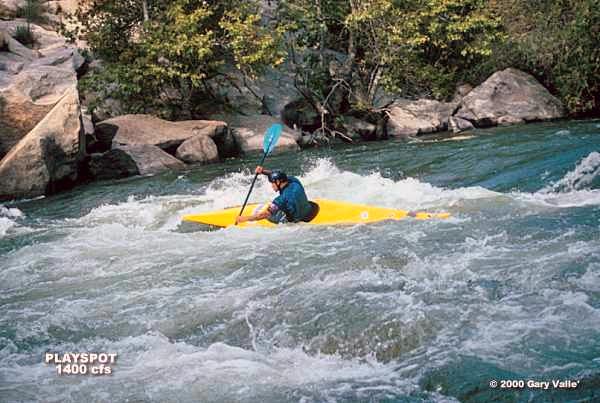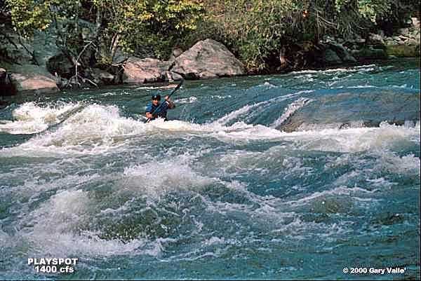 Playspot is a short section of the course, downstream of the run-out from Island Chute. It features a complex combination of eddies, boils, waves , small holes and shearing currents.