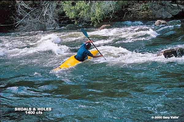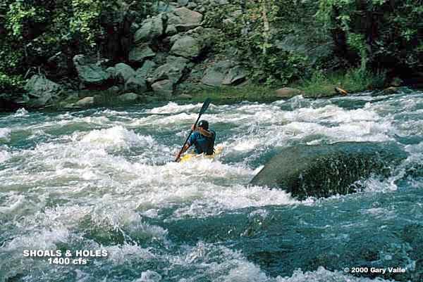 Downstream of the Put-in section is Shoals & Holes. In this section the gradient steepens and the river is not quite so channelized. A series of stepped, irregular ledges results in a variety of holes, standing waves, and boily eddies.